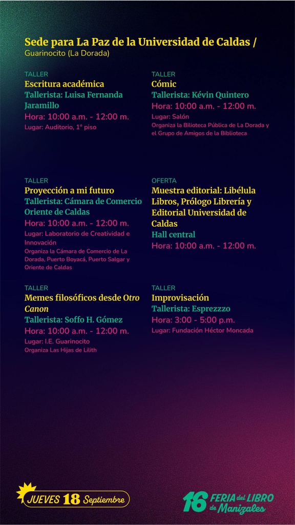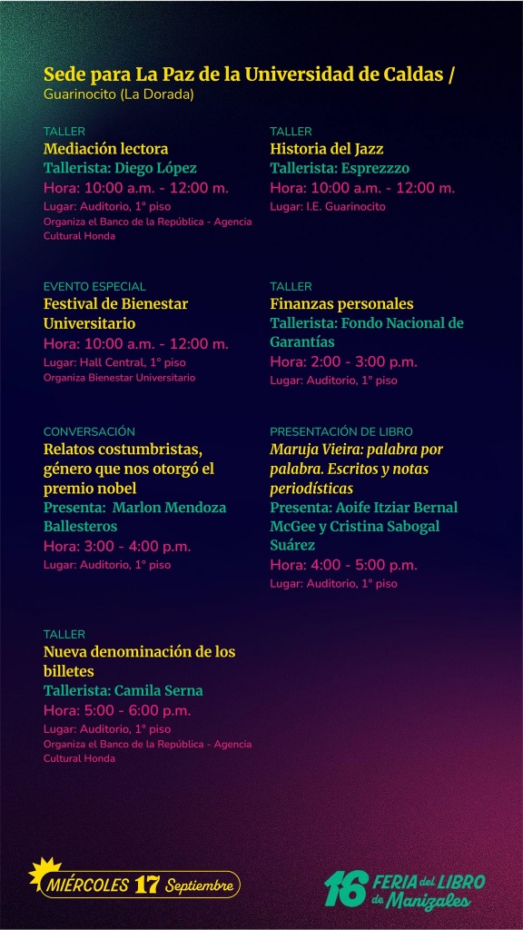 Este 17 y 18 de septiembre, prepárate para vivir una experiencia única con la Feria del Libro de Manizales en nuestra región.
